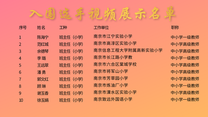 “南京工匠”选树班主任(小学)绝技绝活竞赛视频展示
