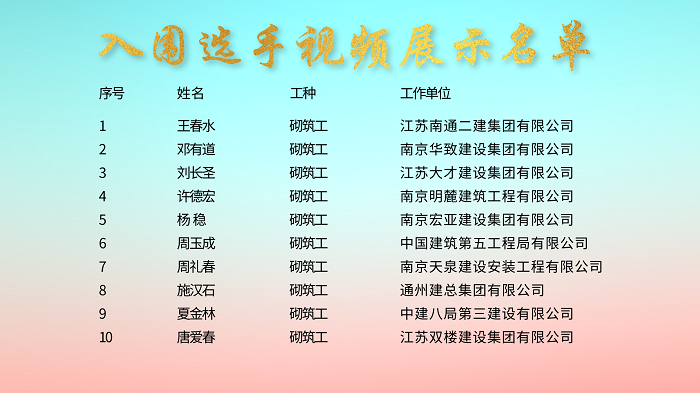 “南京工匠”选树砌筑工绝技绝活竞赛视频展示