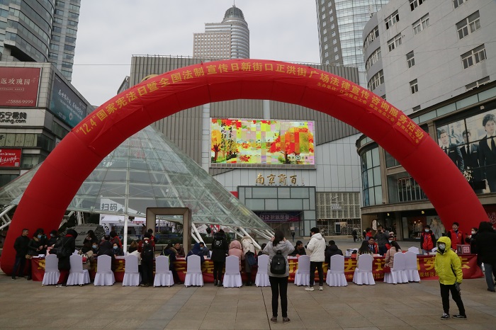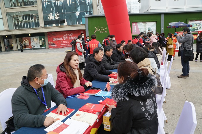 为深入贯彻落实党的十九大精神和十九届五中全会精神,增强全民法治观念,深入学习习近平法治思想,弘扬宪法精神,维护宪法权威,推动宪法全面实施。12月4日,江苏省总工会、南京市总工会和秦淮区总工会三级工会联合组织在“中华第一商圈”新街口正洪街广场开展国家宪法日暨全国法制宣传日大型广场法律咨询服务活动。今年是省、市、区总工会连续第十三年联合开展“12·4”法制宣传日大型广场法律宣传活动。省总工会法律工作部部长何应洋,市总工会一级调研员刘国庆,秦淮区总工会常务副主席钱晓红,市总工会法律工作部部长帅小平等领导全程参与了活动并现场为职工群众解答疑惑。