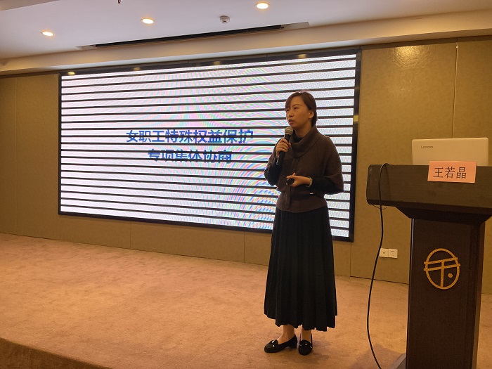10月20日,南京市总工会女职工委员举办了女职工特殊权益?;ぷㄏ罴逍膛嘌祷帷1敬闻嘌祷嵫肽暇┦凶芄せ嶙ㄖ凹逍讨傅荚泵反用?、南京师范大学金陵女子学院副教授王若晶两位专家授课。南京市部分专项集体协商提质增效试点单位的工会女工干部和直属工会女工干部参加了此次培训。