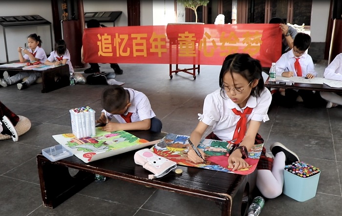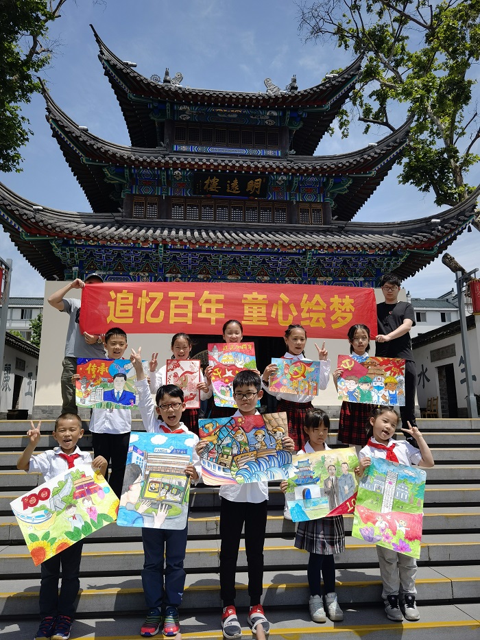 为庆祝中国共产党成立100周年,5月29日上午,市总工会在夫子庙明远楼开展红色基因代代传——“追忆百年、童心绘梦”活动,来自科举博物馆的市劳模冯家红馆长,给学生们讲述了南京第一个总工会在明远楼成立的故事,来自南京市科睿小学的同学,通过现场绘画,表达对党、对祖国的祝福。