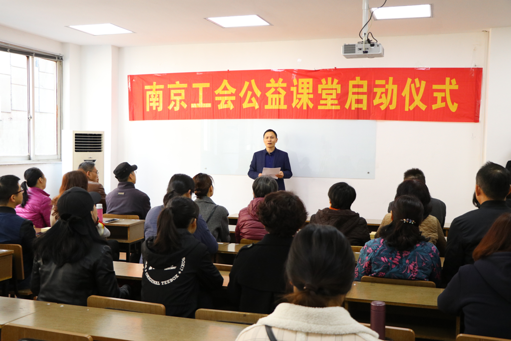 南京工会公益课堂开课前举行了简短的启动仪式,市总工会副主席闻庆武、智联培训学校校长董海涛等领导出席启动仪式并讲话,通过网上报名入选的30名职工群众参加了启动仪式。