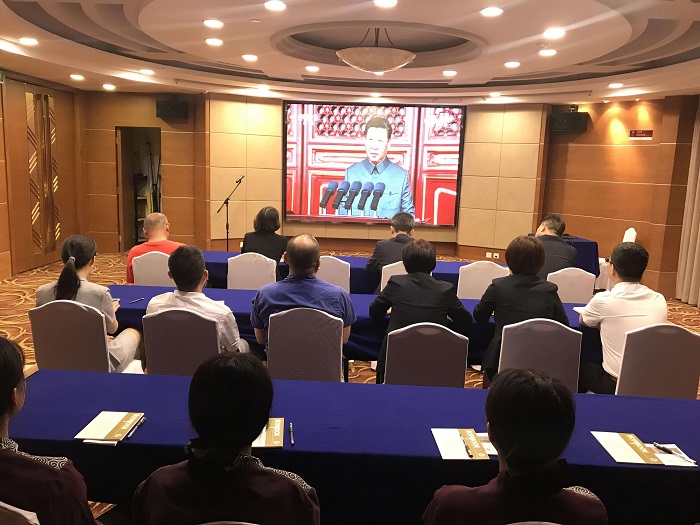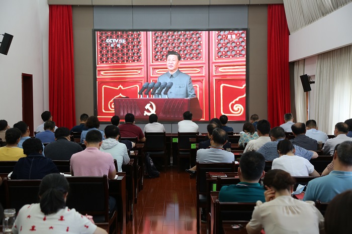 7月1日上午8时,南京市总工会组织全体党员、干部集中收看庆祝中国共产党成立100周年大会现场直播。