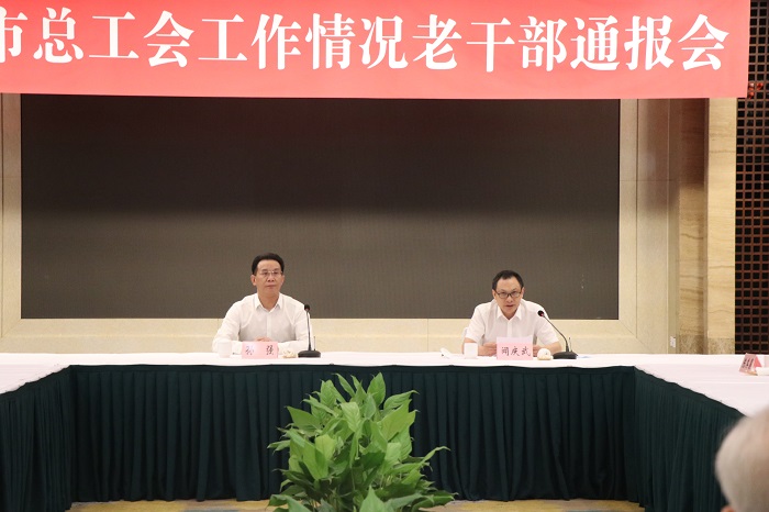 7月23日上午,南京市总工会工作情况老干部通报会在天丰大酒店七楼天辰厅隆重召开, 市总党组书记、常务副主席孙强通报2020年上半年全市工会工作开展情况及下半年主要任务?;嵋橛墒凶艿匙槌稍?、工会副主席闻庆武主持,机关50位离退休干部参会。