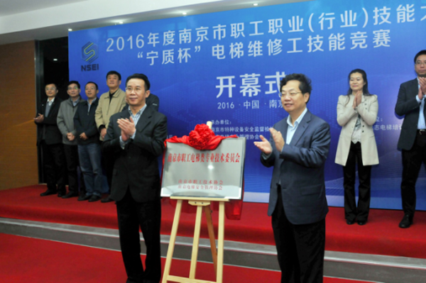 近日,在全市电梯维修工职业技能大赛开幕式上,南京市总工会党组书记、常务副主席孙强和南京市质监局局长孙宁为“南京市职工电梯类专业技术委员会”揭牌,标志着“南京市职工电梯类专业技术委员会”正式成立。