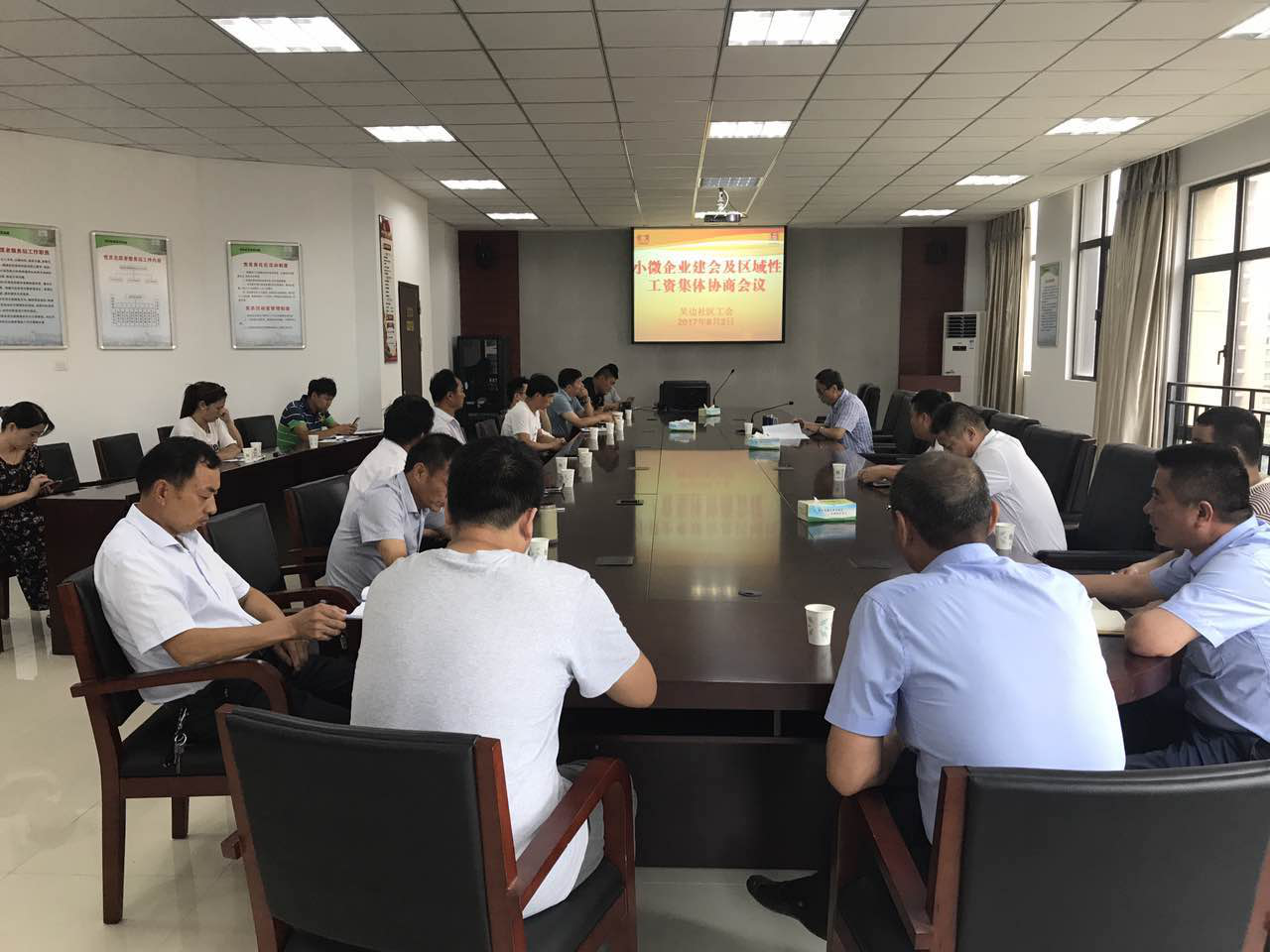 8月2日下午,栖霞区尧化街道吴边社区联合工会召开辖区各企业建会及区域性工资集体协商推进会,力争将辖区内25人以下的小微企业全部吸纳入会,进一步就维护职工的合法权益推动工资集体协商工作。