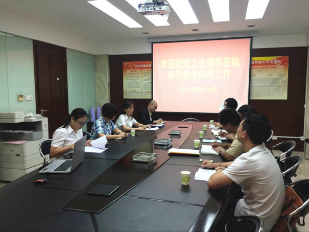 8月16日上午,栖霞区迈皋桥街道总工会人员及栖霞区两名工资集体协商专职指导员走访了街道兴卫物业公司和南京新颐和康复医院,就开展工资集体协商工作提供专项指导服务。